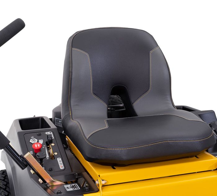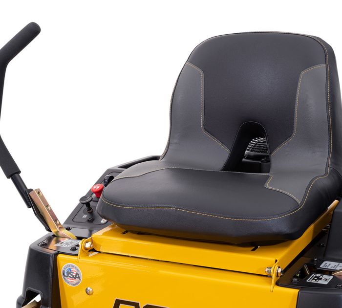 The Hustler Dash XD 42 is ergonomically designed for comfortable use, featuring a comfortable seat providing ample support for extended periods of mowing.  Its durable frame is built to last, providing reliable performance for years to come.